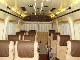 The interior is thoughtfully designed to maximize passenger comfort, with high headroom, wide windows, and ergonomically designed reclining seats with ample legroom. The spacious layout accommodates 17 passengers without compromising on comfort, making long trips more enjoyable and less tiring.
